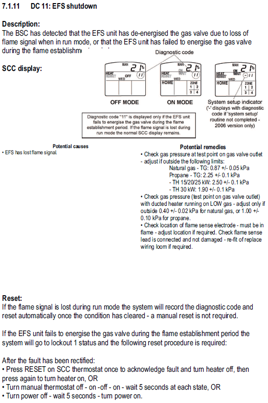 • IMPORTANT: - FC11 is only displayed if the EFS (Fenwal) fail to energise the gas valve during flame establishment period. If the flame is lost during run mode FC11 is not seen on the screen and is recorded only in the Fault log history