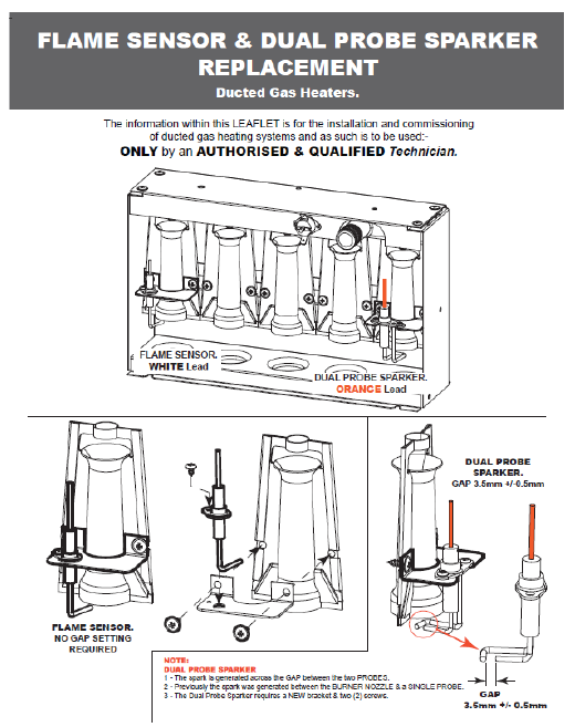 • Check flame sense gap – should be 4-6mm from flame sense electrode to burner face