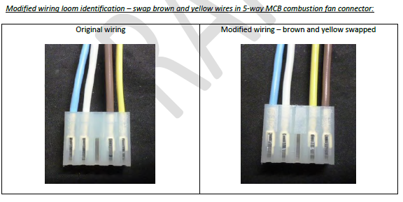 To check if a Fenwal - MCB Upgrade kit has already been fitted you can confirm by checking the 5-way MCB combustion fan connector