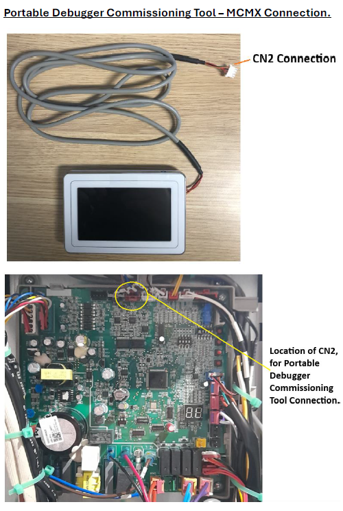 Portable debugging / commissioning tool - MCMX outdoor unit connections